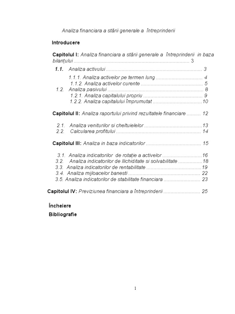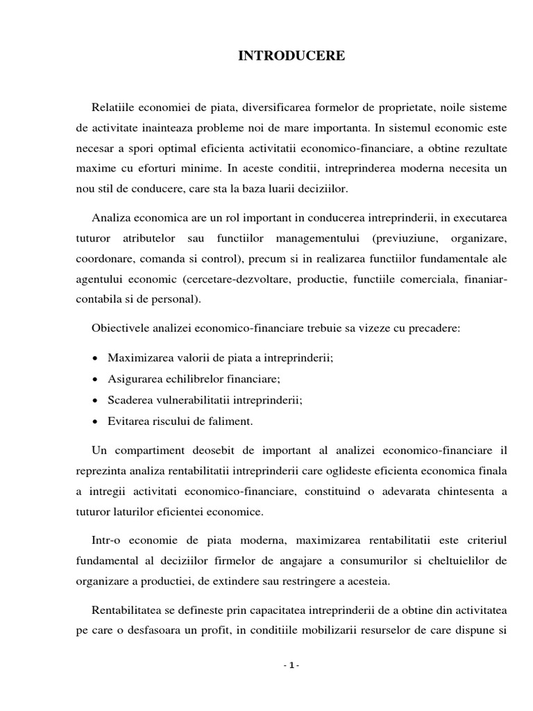 Analiza Economico Financiara A Intreprinderii Exemplu