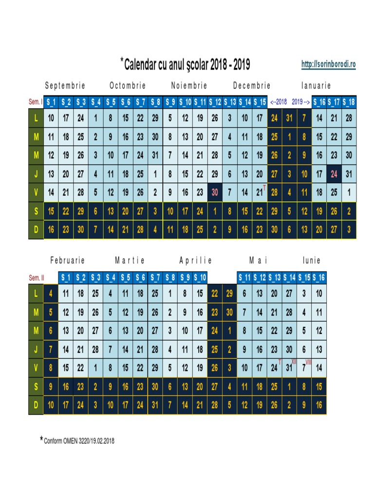 Calendar Cu Anul Scolar 2018 2019 De A Valma