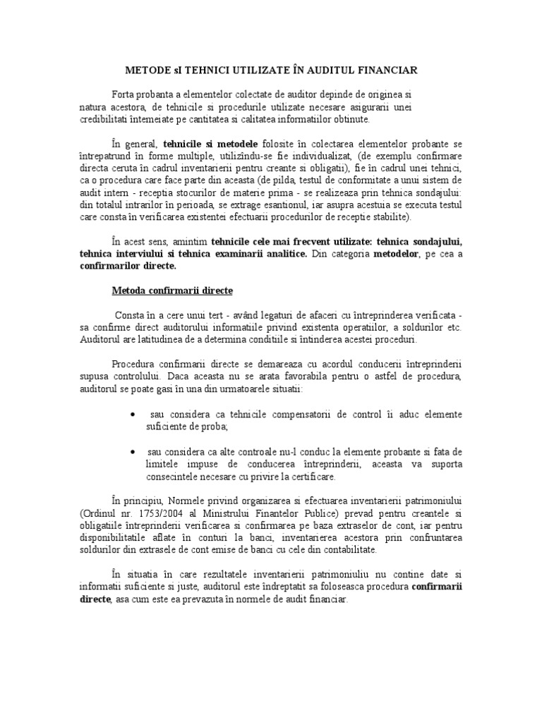 Metode Si Tehnici Utilizate In Auditul Financiar