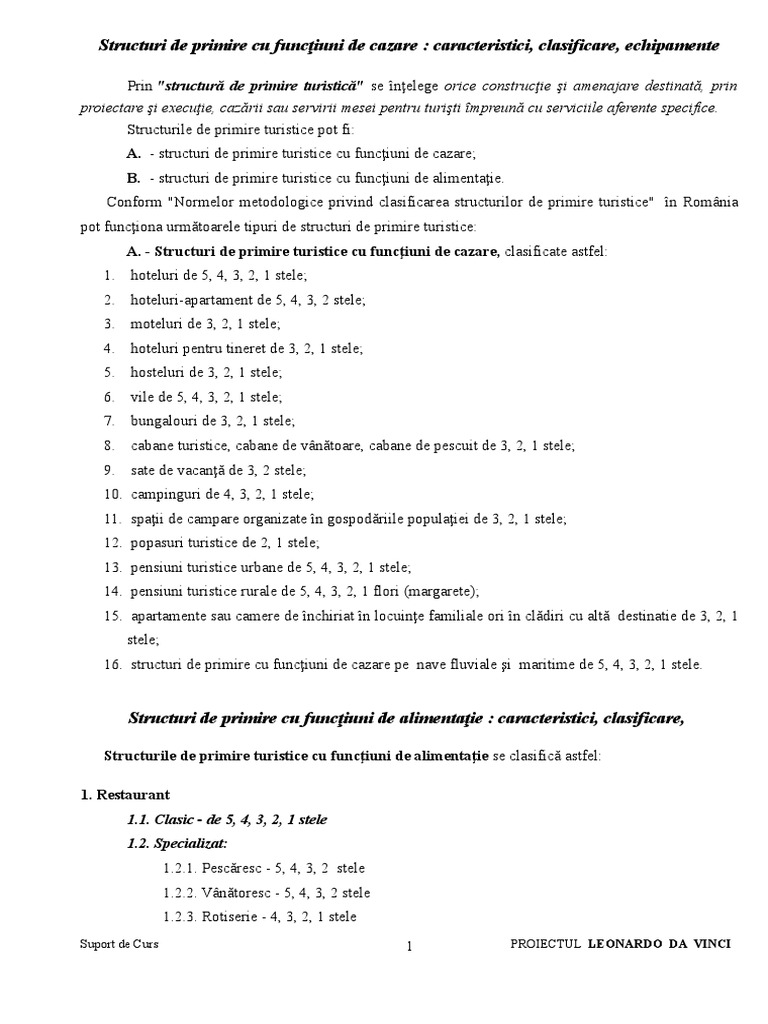 Clasificarea Structurilor De Primire Turistice Romania Turistica 100 Turism Romanesc