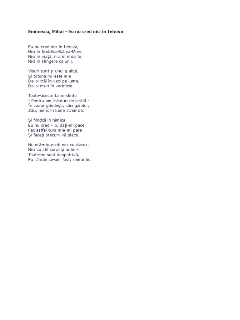 Mihai Eminescu Eu Nu Cred Nici In Iehova