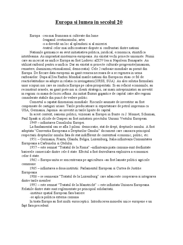 Europa Si Lumea In Secolul 20