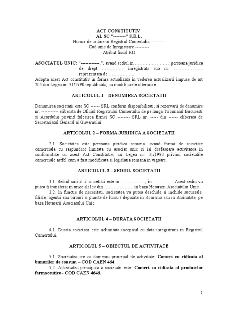 Model Act Constitutiv Cu Toate Codurile Caen