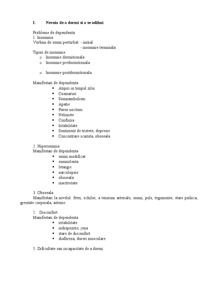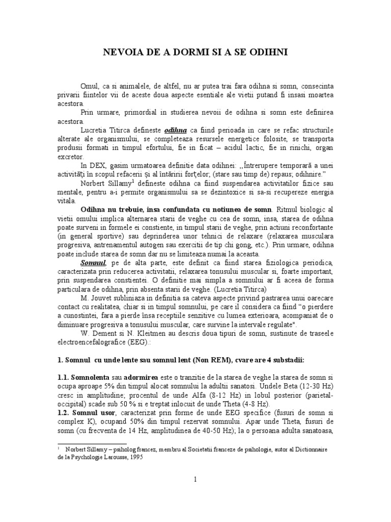Nevoia De A Dormi Si A Se Odihni Doc Document