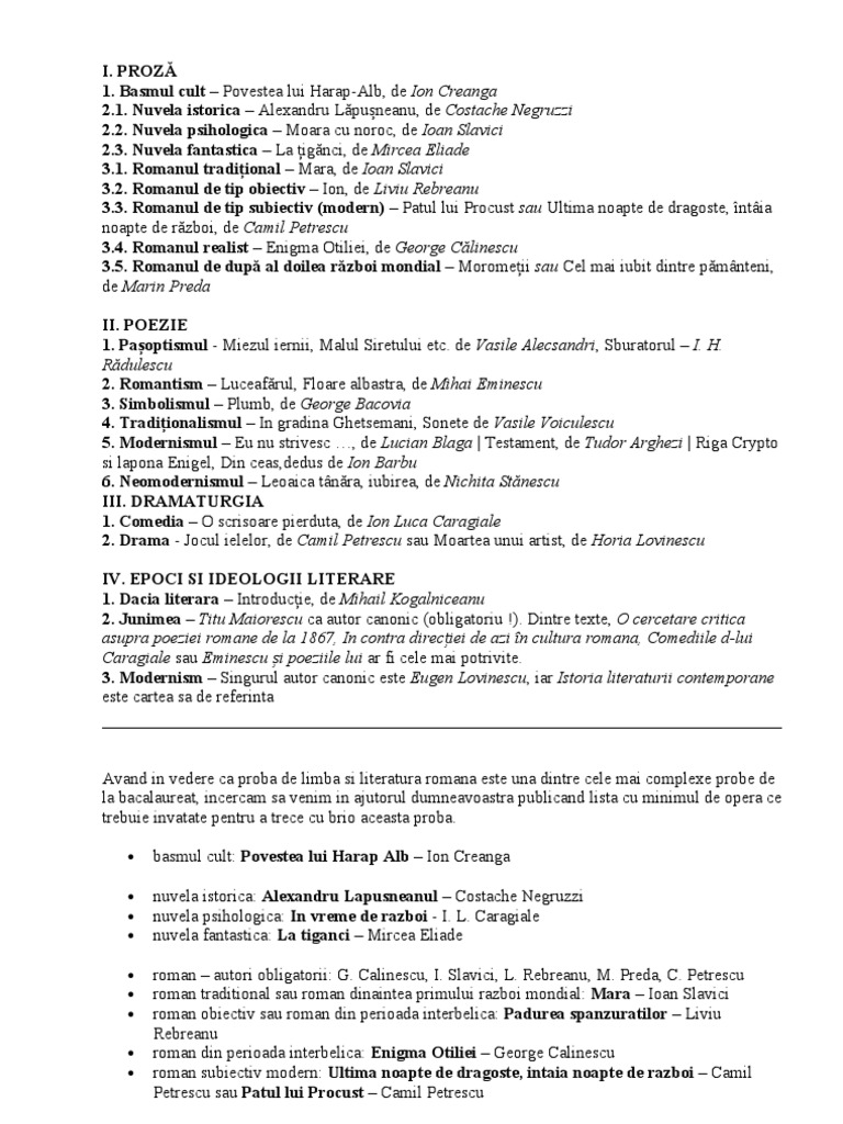Opere Literare De Studiat Pentru Bac Romana