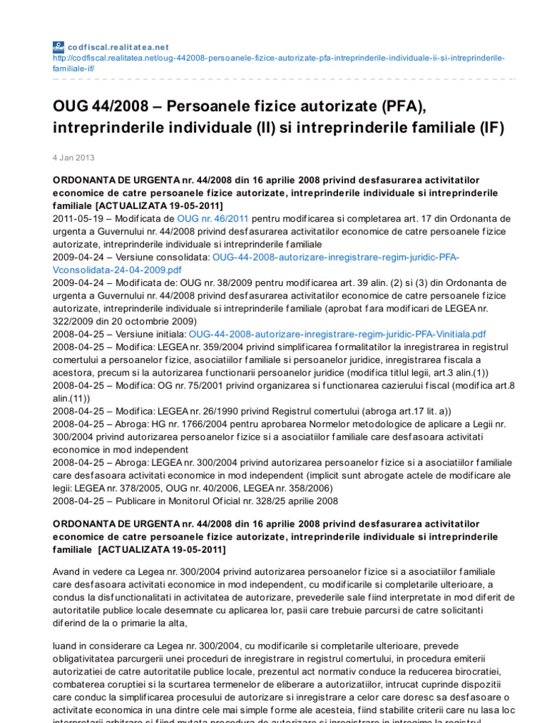 Oug 44 2008 Actualizată Legea Care Reglementează Pfa