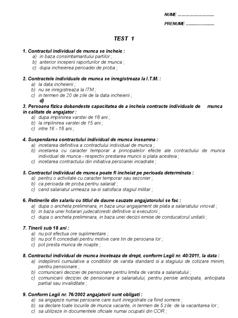 Dreptul Muncii Test Grila