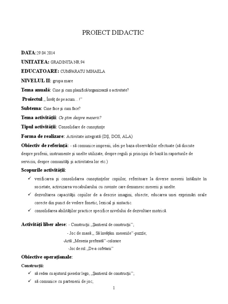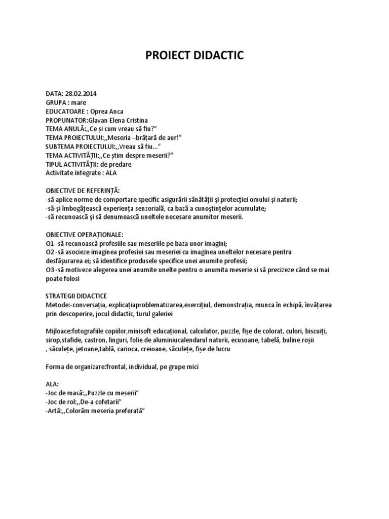 Proiect Didactic Ce Stim Despre Meserii Mda1995 31 01 2018