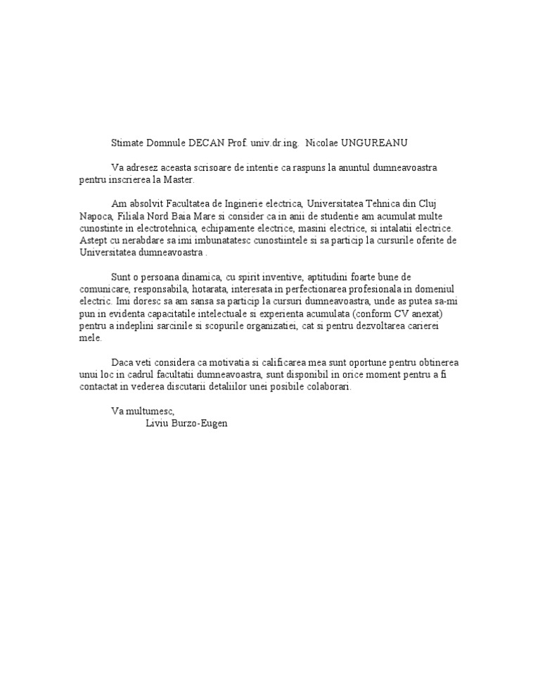 Model Scrisoare De Intentie Admitere Facultatea De Istorie